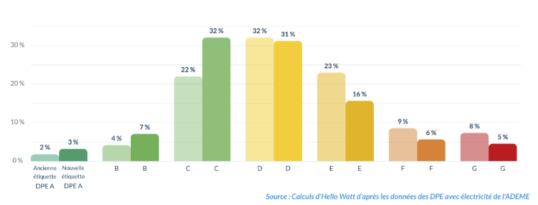 Les classes C et D représenteront ainsi plus de 60% du parc chauffé à l’électricité après la mise à jour.