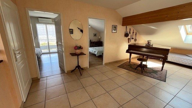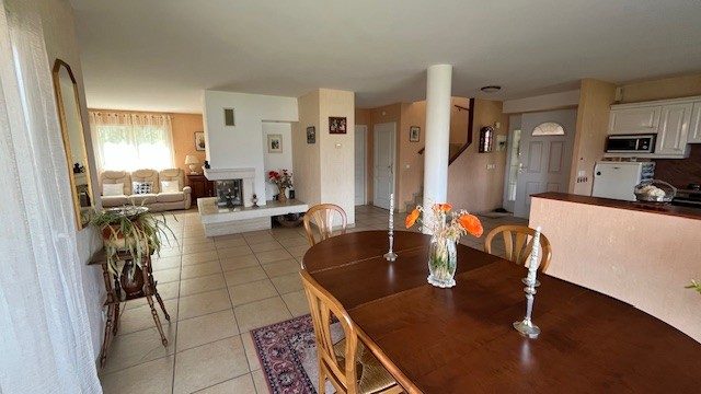 Au rez-de-chaussée : un dégagement et WC indépendant, une vaste pièce de vie de 60m² (cuisine américaine équipée, salle à manger, salon avec cheminée) baignée de lumière grâce à ses grandes ouvertures, le tout créant une ambiance chaleureuse et conviviale. Une première chambre de plain-pied dispose d'une salle de bains et d'un WC. À l'étage : 3 chambres dont deux ouvrent sur un balcon, une salle d'eau, un WC et un grand palier vous invitant à la détente.
