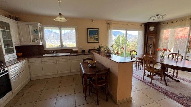 La maison très lumineuse, bénéficie d'une belle terrasse vous permettant de profiter des beaux jours et d'admirer la vue magnifique sur les massifs.