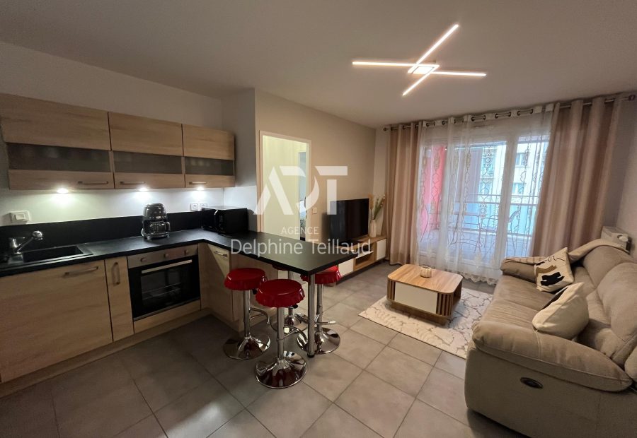 GRENOBLE - T2 meublé à louer - 3 boulevard Clémenceau - à proximité des toutes les commodités, de l'hyper centre de Grenoble, et de l'arrêt de tram et bus Flandrin Valmy pour rejoindre le campus universitaire et le centre commerciale Neyrpic etc. Appartement récemment rénové pour sa mise en location et meublé avec goût, situé au 4ème étage avec ascenseur. Il propose une pièce de vie avec cuisine toute équipée (hotte, plaque, four, frigo, micro ondes) ouverte sur le séjour, un accès à une belle terrasse, une chambre avec rangement, ainsi qu'une salle de bain avec machine à laver. DPE B (2025) : logement très bien isolé et très faibles consommations d'énergie. Eau chaude et chauffage collectifs inclus dans le loyer. Eau froide individuelle. Le bien est soumis au statut de la copropriété. Loyer de 720,00 euros par mois charges comprises dont 70,00 euros par mois de provision pour charges (soumis à la régularisation annuelle). Soit avec Assurance Habitation et Assistance* ( null euros ) : 720,00 euros. Les honoraires charge locataire sont de 518,70 euros ( soit 13,00 euros/m² ) dont 119,70 euros pour état des lieux ( soit 3,00 euros/m² ). Montant estimé des dépenses annuelles d'énergie pour un usage standard : entre 300 et 450 euros. Prix moyens des énergies indexés en 2023. Zone soumise à encadrement des loyers. Le loyer de base du bien proposé est de 650 euros, le loyer de référence majoré (fixé par arrêté préfectoral) est de 666,33 eurosLes informations sur les risques auxquels ce bien est exposé sont disponibles sur le site Géorisques : https://www.georisques.gouv.fr. *Service facultatif. Contribution annuelle "attentats" non comprise. Voir conditions en agence.