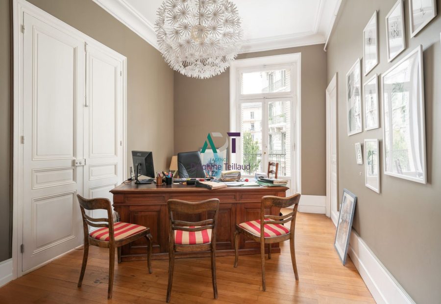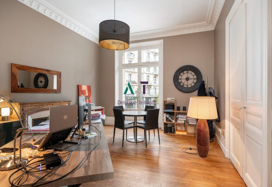 Avenue Félix Viallet, dans un immeuble Art Déco avec ascenseur, très bel appartement de 163m², actuellement configuré en cabinet d'avocats (7 bureaux), mais très facilement réaménageable à usage d'habitation en refaisant une cuisine et une salle de bains, avec la possibilité d'avoir 5 chambres. L'appartement est en partie climatisé, lumineux, avec beaucoup de cachet car on retrouve toutes les prestations et les volumes de l'ancien, hauteur sous plafond, staffs, cheminées...Il bénéficie de 2 très grands galetas (17m² et 12m²) qui sont mitoyens, et d'1grande cave (14m²). A découvrir!