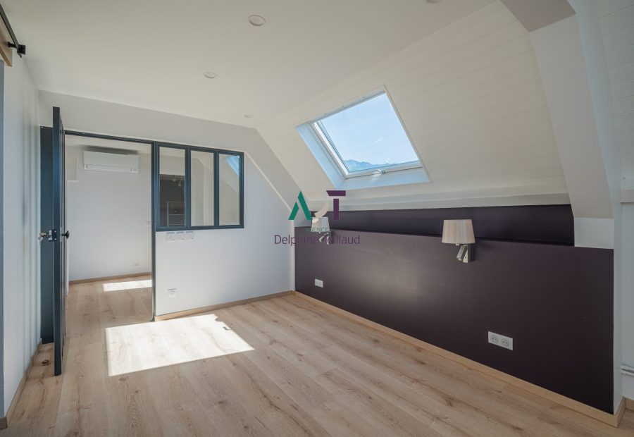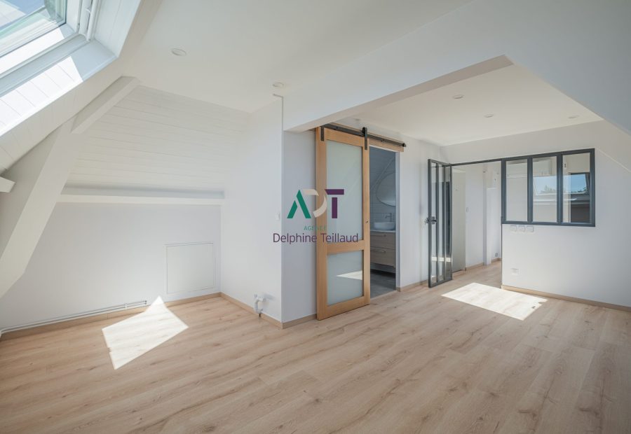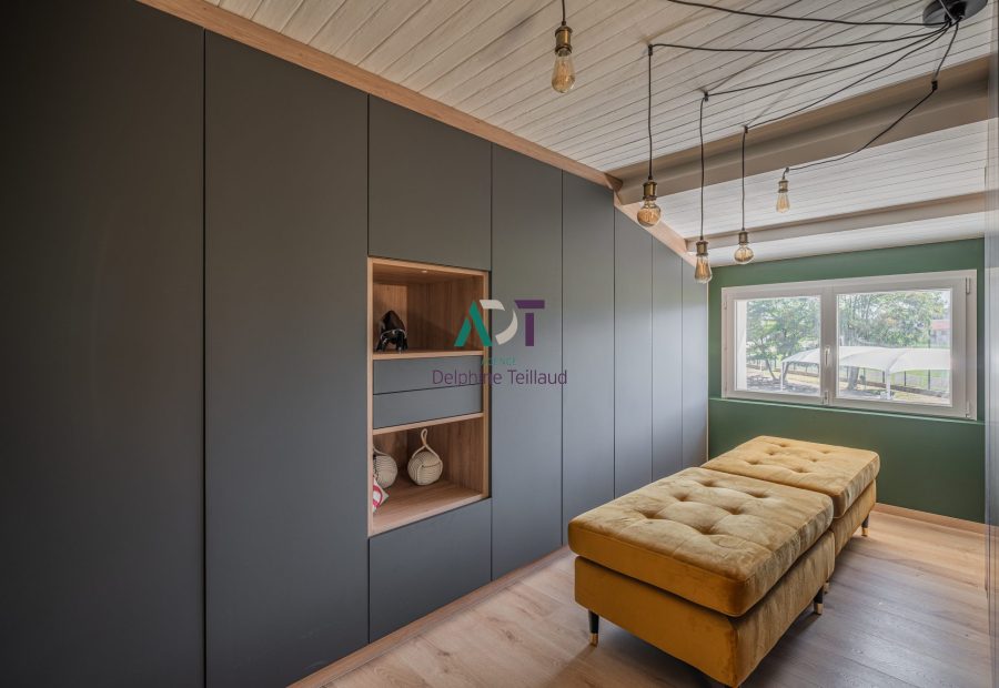 A l’étage : une suite parentale bénéficiant d’un espace bureau, une chambre avec sa salle d’eau et WC, et un dressing aménagé indépendant.
