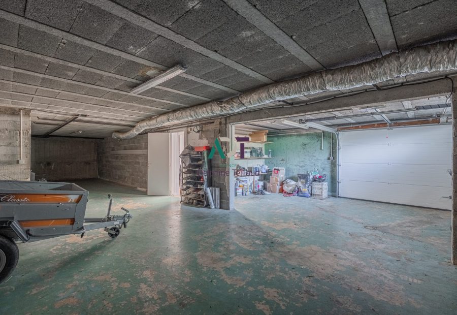 Au sous-sol : grand garage, cave, buanderie, accès intérieur au rez-de-chaussée