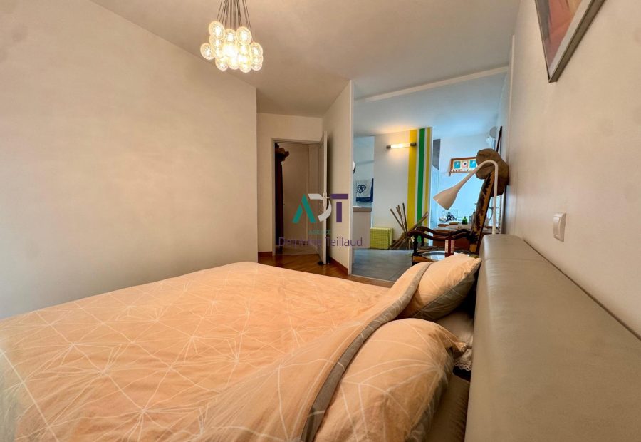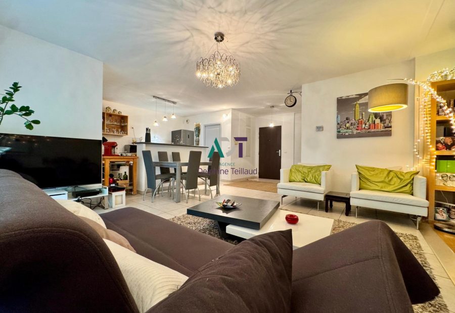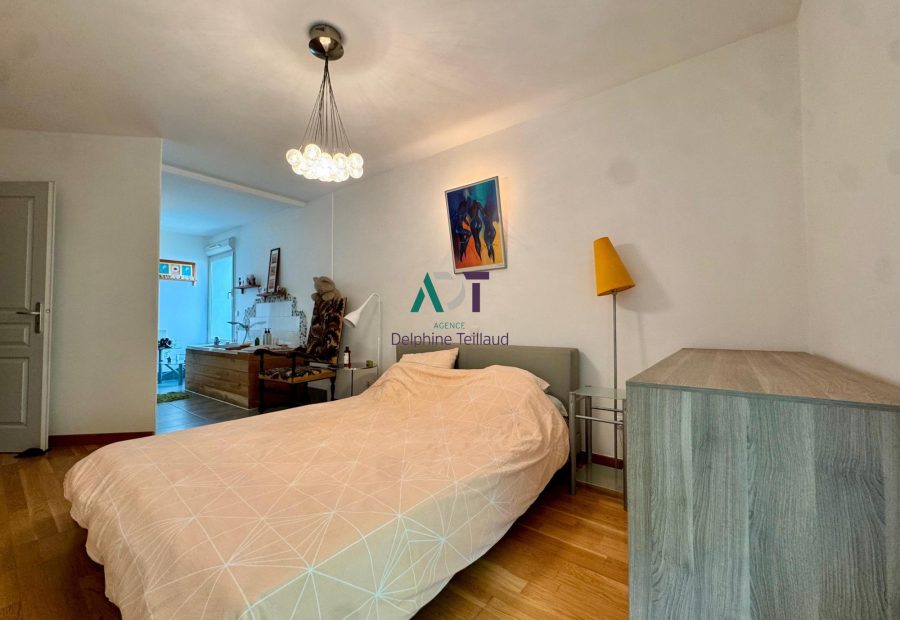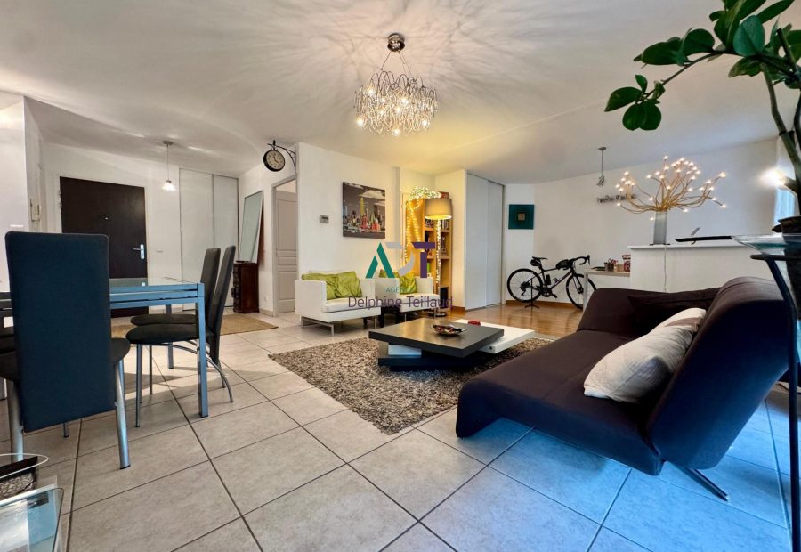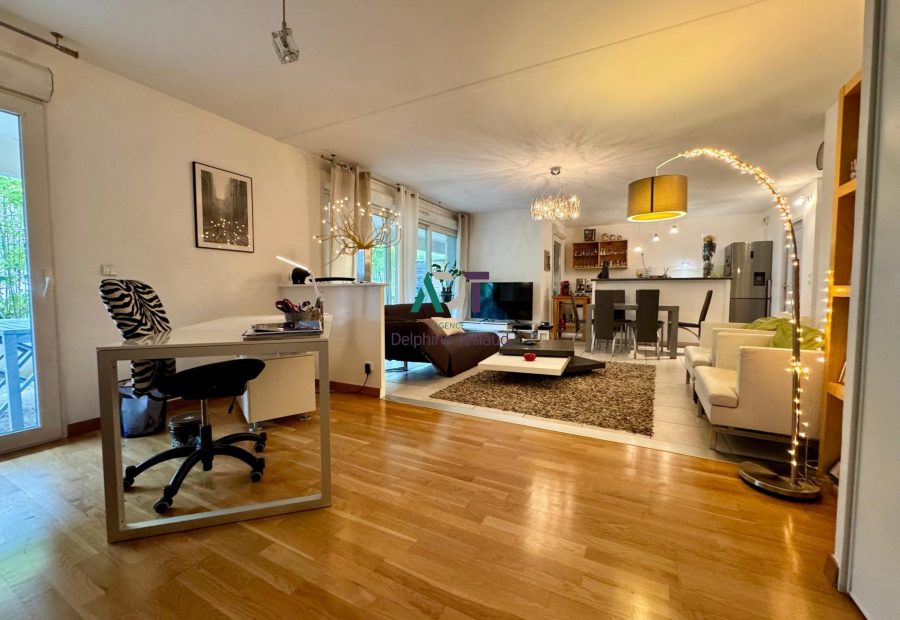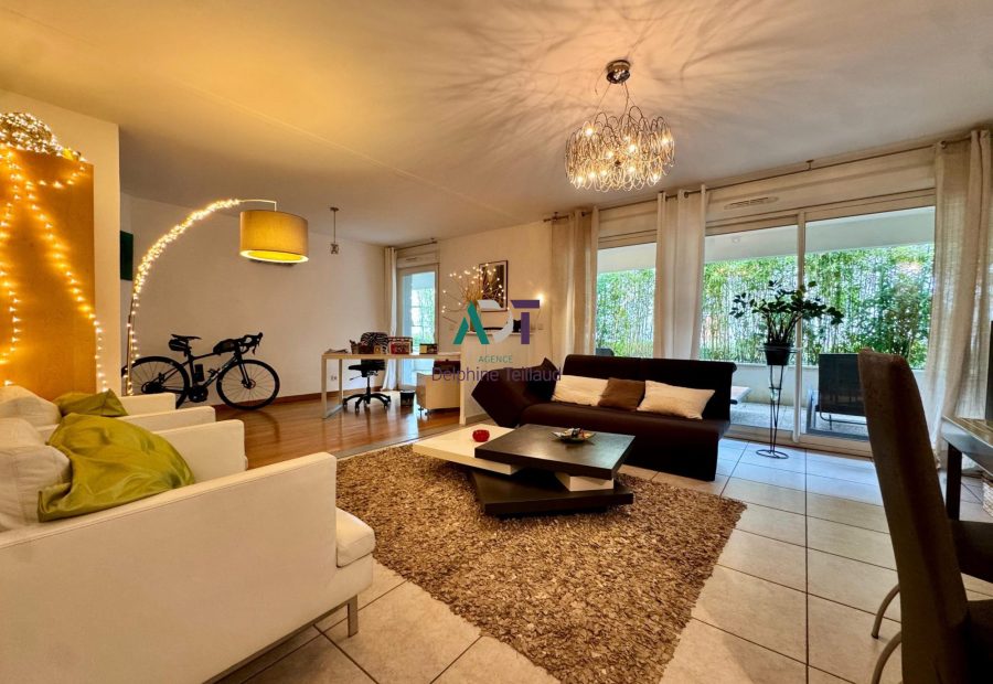 Au cœur d'Innovallée, dans une Résidence de 2007, très bel appartement de 85,59m² en rez-de-terrasse. Actuellement configuré en séjour double (48m²) et suite parentale (28m²), il suffit de monter une cloison pour refaire la deuxième chambre. Vous pourrez prendre vos repas et profiter de l'exceptionnelle terrasse couverte de 38m², sans vis à vis et au calme. L'appartement est en excellent état: huisseries alu double vitrage, volets électriques, chauffage au sol, prêt à accueillir un nouveau propriétaire. La présence d'un garage fermé en sous-sol de la copropriété est un atout supplémentaire. Le quartier est recherché pour sa proximité des commodités, écoles, transports en commun et commerces. A découvrir!
