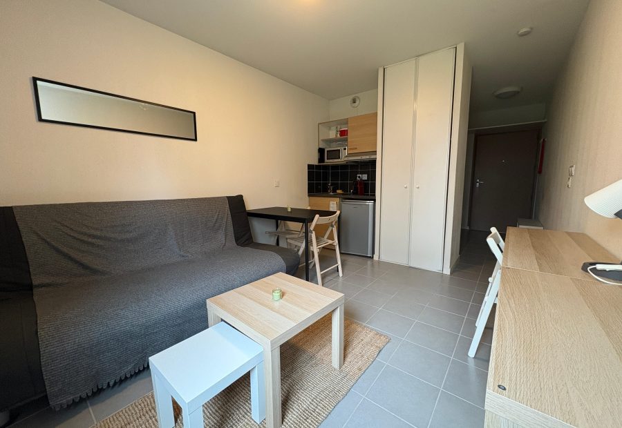 Grenoble, 14 avenue Jules Vallès, Studio joliment meublé de 19,95 m²dans une résidence récente idéalement située, en rdc, , kitchenette équipée avec plaques et frigo, eau froide collective, laverie à proximité, chauff électrique, proximité tram, campus et commerces. Le bien est soumis au statut de la copropriété. Loyer de 498,00 euros par mois charges comprises dont 33,00 euros par mois de provision pour charges (soumis à la régularisation annuelle). Les honoraires charge locataire sont de 259,00 euros ( soit 12,98 euros/m² ) dont 59,50 euros pour état des lieux ( soit 2,98 euros/m² ). Montant estimé des dépenses annuelles d'énergie pour un usage standard : entre 300 et 460 euros. Prix moyens des énergies indexés en 2021. Les informations sur les risques auxquels ce bien est exposé sont disponibles sur le site Géorisques : https://www.georisques.gouv.fr