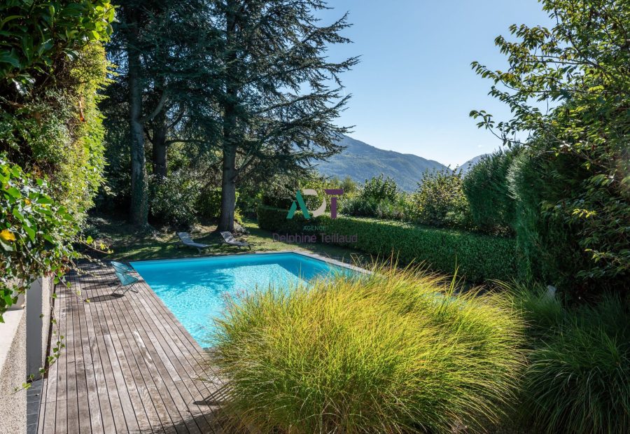 Située à quelques pas du centre du village, cette superbe maison d’architecte incarne l’élégance et l’esprit des années 70. Nichée au cœur d’un parc paysagé de 2 686 m², elle offre un cadre de vie unique, sublimé par des vues panoramiques à couper le souffle sur les massifs environnants.