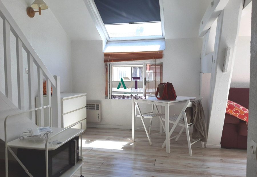 Rue Colbert, au 3ème et dernier étage, charmant T1 meublé de 30m² donnant sur cour à l’arrière de l’immeuble. La chambre est aménagée sur mezzanine avec de nombreux rangements, le coin cuisine est équipé, avec machine à laver le linge, petite salle de bain et WC. Le chauffage est individuel électrique et l'eau froide collective avec sous compteur. L'appartement est vendu loué (520€ dont 75€ de provision de charges), mais peut être libéré à partir du 30/04/2026.