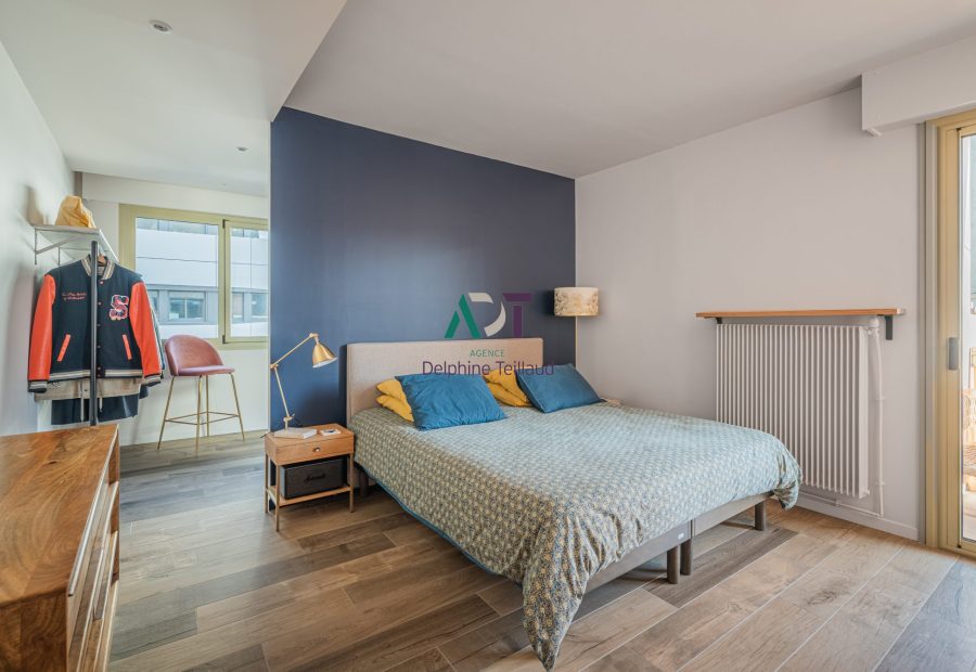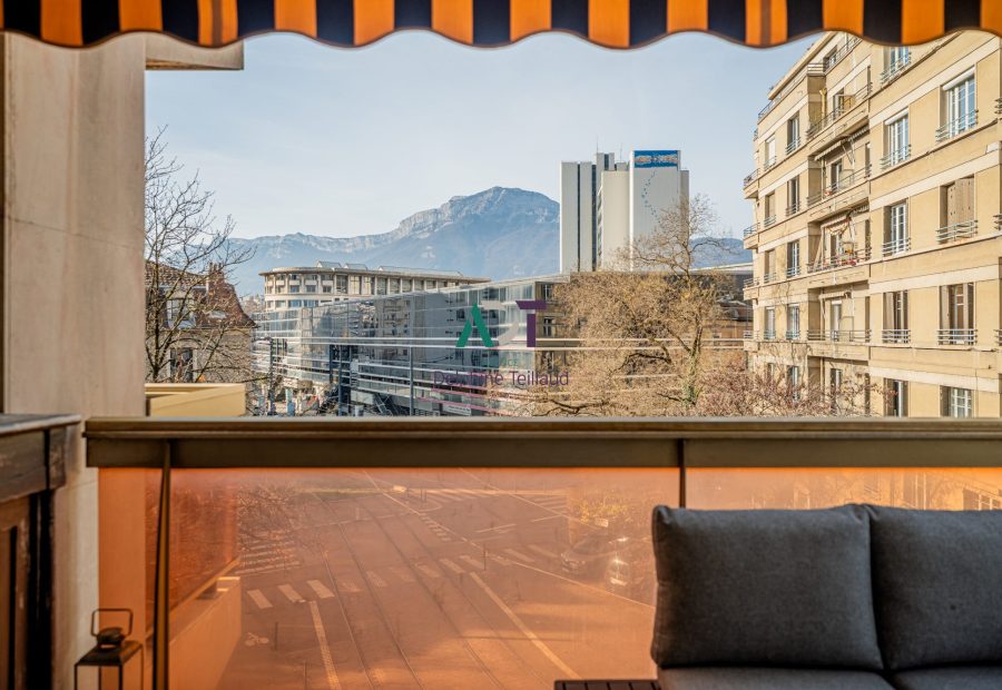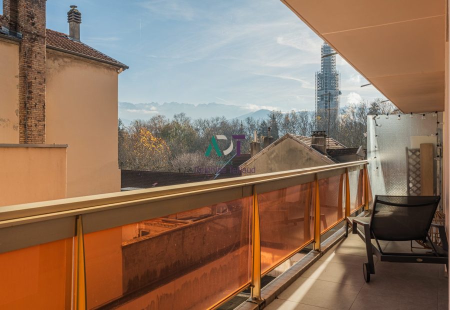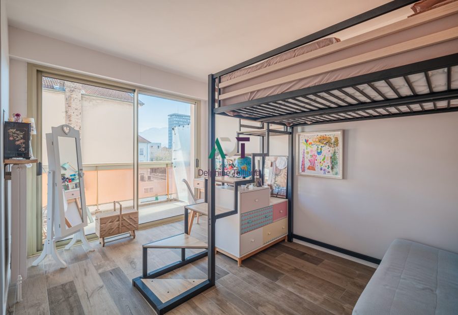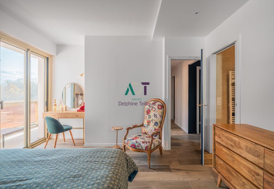 L'espace nuit se compose de 3 chambres dont une suite parentale avec salle d'eau comportant une douche à l'italienne et dressing sur mesure donnant toutes sur une autre terrasse avec vue sur Belledonne et la Tour Perret.