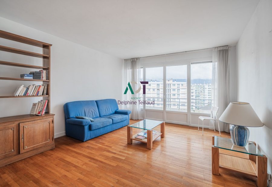 Un hall dessert un séjour lumineux donnant sur un balcon filant avec vue sur le Vercors. La cuisine, équipée, est dotée d'une loggia. 2 belles chambres, dont une avec accès au balcon.