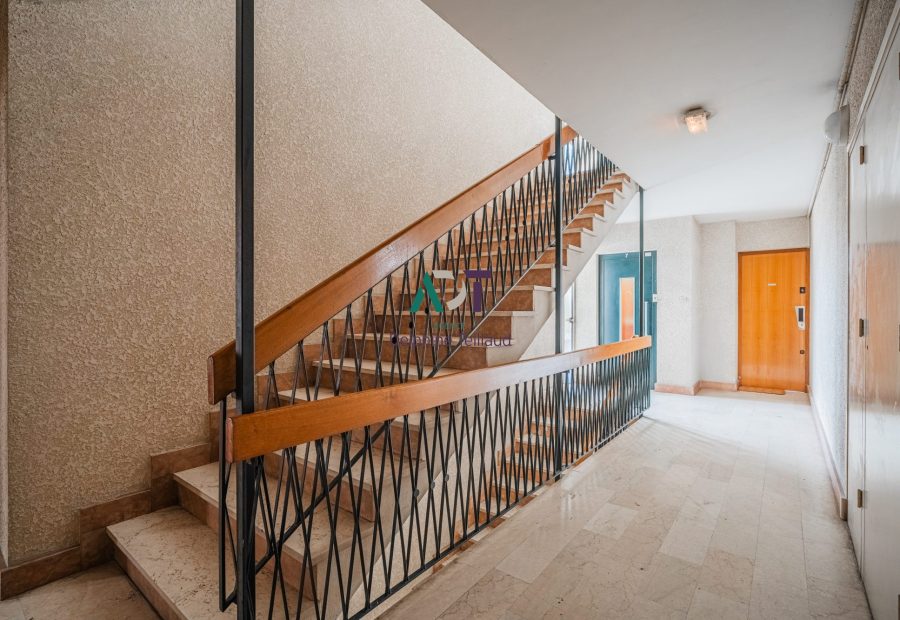 Au sein d'une copropriété bien tenue, au 7ème étage avec ascenseur, cet appartement traversant est/ouest se compose comme suit :