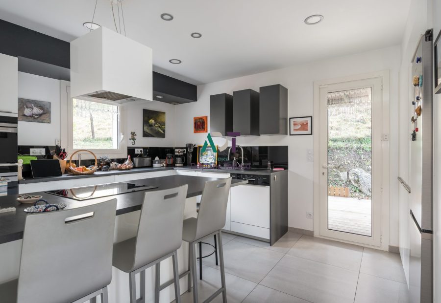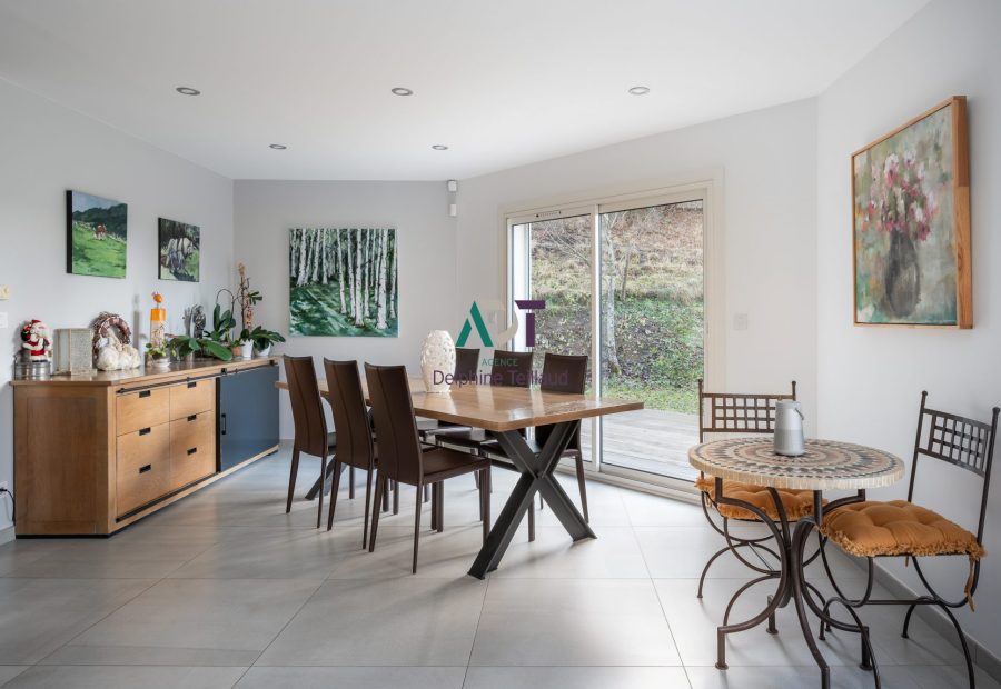 Rare, col de Clémencières, à 5 mn de la porte de France, maison traditionnelle de très bonne facture construite en 1997 sur 1200 m² de terrain en partie plat et joliment arboré de belles essences.