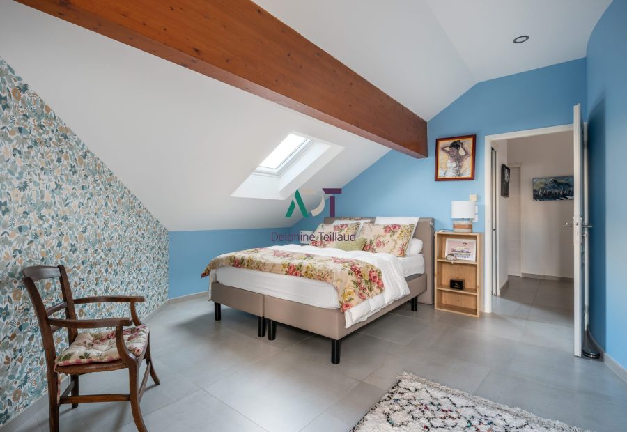 Bénéficiant d'une surface au sol de 179 m² dont 157.70 m² de loi Carrez, cette maison en excellent état, aux prestations raffinées et à la décoration chaleureuse offre une très belle pièce de vie ouvrant plein sud sur terrasse en Ipé, une cuisine entièrement équipée, 5 chambres : 4 dans les étages supérieurs et une vaste chambre de plain pied possiblement indépendante avec sa salle de douche privative et bureau.