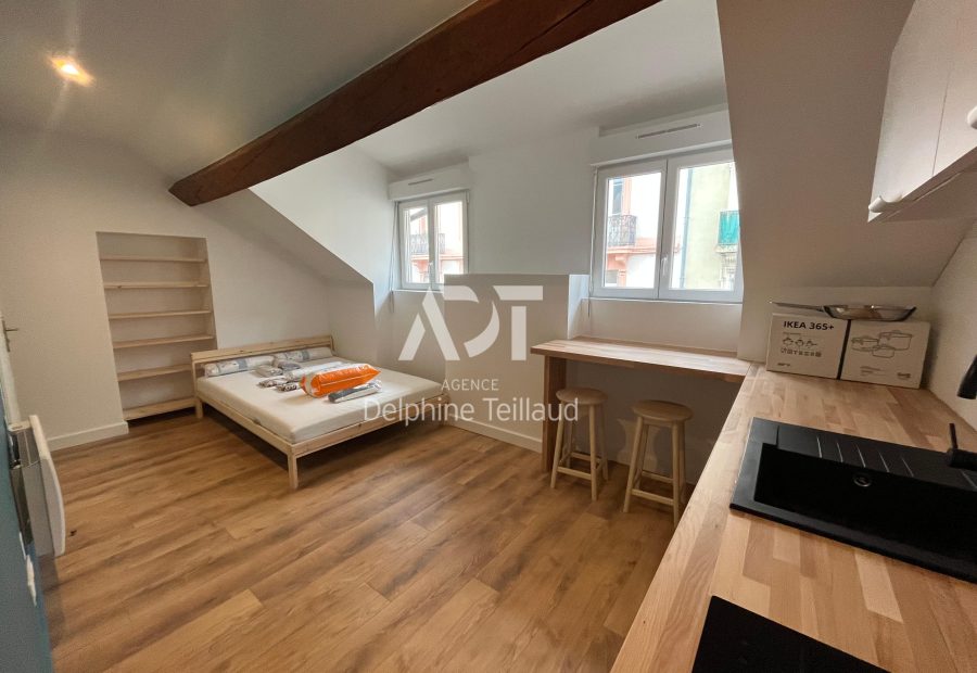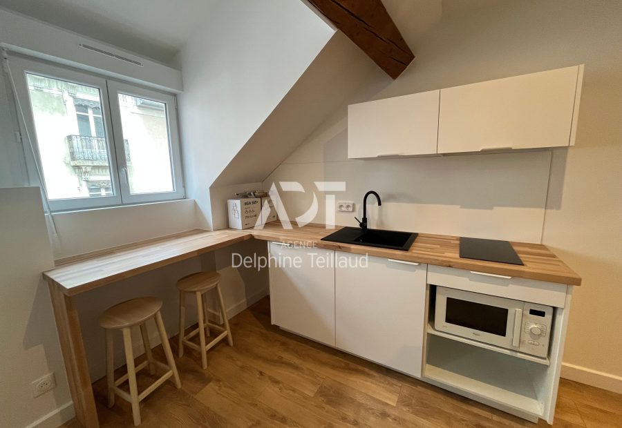 GRENOBLE - Joli studio meublé à louer - situé rue Michelet, à proximité des commerces, des arrêts de tram A, B, D et E et de l'école GEM. Cet appartement entièrement rénové, et placé au 3ème étage sans ascenseur propose une belle pièce de vie avec cuisine équipée (hotte, plaque, micro ondes), une salle d'eau, et un wc indépendant. Double vitrage. DPE C (nouveau DPE). Chauffage individuel électrique. Eaux individuelles. Le bien est soumis au statut de la copropriété. Loyer de 512,00 euros par mois charges comprises dont 22,00 euros par mois de charges forfaitaires. Les honoraires charge locataire sont de 223,86 euros ( soit 13,00 euros/m² ) dont 51,66 euros pour état des lieux ( soit 3,00 euros/m² ). Montant estimé des dépenses annuelles d'énergie pour un usage standard : entre 402 et 544 euros. Prix moyens des énergies indexés en 2023. Les informations sur les risques auxquels ce bien est exposé sont disponibles sur le site Géorisques : https://www.georisques.gouv.fr