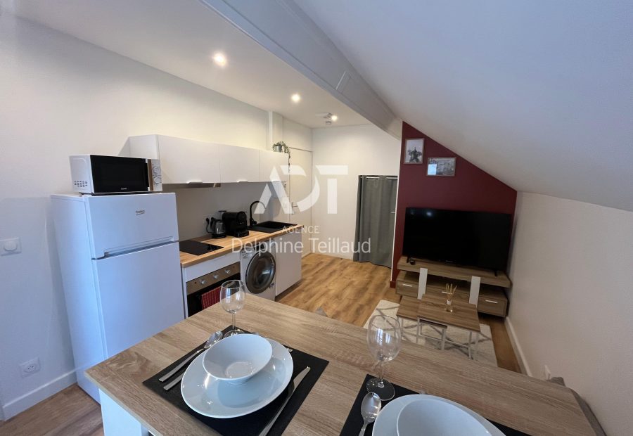 GRENOBLE - Joli T2 meublé à louer - situé rue Michelet, à proximité des commerces, des arrêts de tram A, B, D et E et de l'école GEM. Cet appartement entièrement rénové, et placé au 3ème étage sans ascenseur propose une belle pièce de vie avec cuisine équipée (hotte, plaque, micro ondes, four, machine à laver, frigo), une grande chambre avec rangement et bureau, une salle d'eau, et un wc indépendant. Double vitrage. DPE C (nouveau DPE). Chauffage individuel électrique. Eaux individuelles. Le bien est soumis au statut de la copropriété. Loyer de 725,00 euros par mois charges comprises dont 35,00 euros par mois de charges forfaitaires. Les honoraires charge locataire sont de 329,81 euros ( soit 13,00 euros/m² ) dont 76,11 euros pour état des lieux ( soit 3,00 euros/m² ). Montant estimé des dépenses annuelles d'énergie pour un usage standard : entre 545 et 737 euros. Prix moyens des énergies indexés en 2023. Les informations sur les risques auxquels ce bien est exposé sont disponibles sur le site Géorisques : https://www.georisques.gouv.fr
