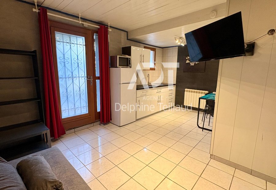 Studio Meublé - SASSENAGE - SASSENAGE - 14 rue Chamechaude - Location meublée, studio de 19.36 m² au sein d'une maison composée de 4 appartements. Il se compose d'une pièce principale comprenant une cuisine équipée (four-micro onde, réfrigérateur, plaque de cuisson) ouverte sur l'espace nuit (canapé lit, télévision). Le locataire dispose d'un grand placard intégré et d'une étagère. La salle de bain offre une douche avec jets hydro-massants ainsi qu'un rangement sous la vasque. Accès indépendant au studio avec possibilité d'aménager une terrasse devant. Local à vélos partagé avec un autre appartement (pouvant contenir vélo, moto,...) Parking collectif (environ 2 places par appartement). Le chauffage, l'eau froide et l'eau chaude sont compris dans un forfait mensuel de charges 80 € TTC. A proximité des transport en commun (arrêt de bus à 3min à pieds) et de l'accès à l'autoroute. Libre. Loyer de 449,00 euros par mois charges comprises dont 80,00 euros par mois de charges forfaitaires. Les honoraires charge locataire sont de 251,68 euros ( soit 13,00 euros/m² ) dont 58,08 euros pour état des lieux ( soit 3,00 euros/m² ). Montant estimé des dépenses annuelles d'énergie pour un usage standard : entre 370 et 540 euros. Prix moyens des énergies indexés en 2021. Zone soumise à encadrement des loyers. Le loyer de base du bien proposé est de 369 euros, le loyer de référence majoré (fixé par arrêté préfectoral) est de 369,776 eurosLes informations sur les risques auxquels ce bien est exposé sont disponibles sur le site Géorisques : https://www.georisques.gouv.fr