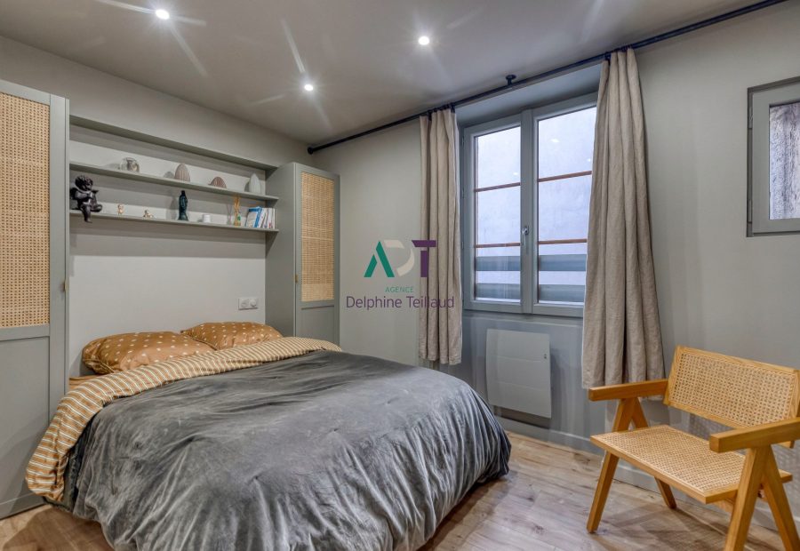 Offrez-vous un cadre de vie unique avec ce superbe T2 de 48 m² situé rue Saint-Laurent, au cinquième étage d’un immeuble de caractère sans ascenseur, à deux pas de la Bastille et du centre historique. Cette rénovation haut de gamme, signée par un architecte, allie le charme de l’ancien à un confort moderne.