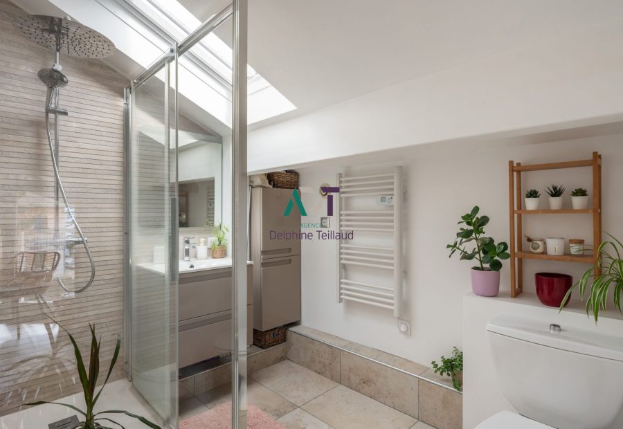 À l’étage, une chambre parentale avec sa salle d’eau privative ainsi qu'un dressing.