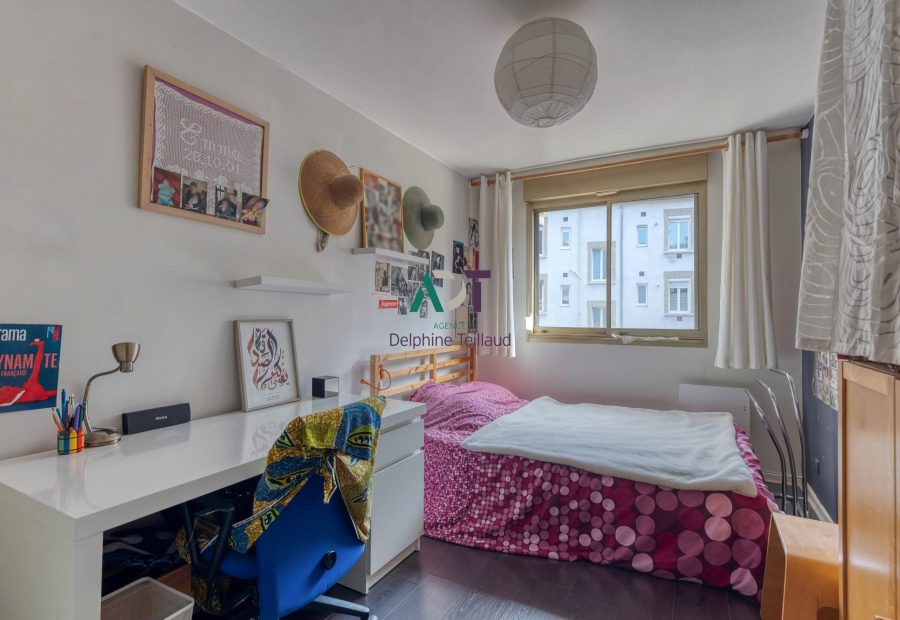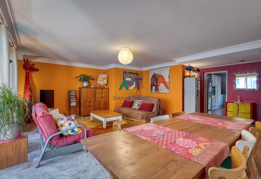 Gare Jaurès, dans un immeuble traditionnel des années 80, grand cinq pièces plus cuisine de 124,68 m² en avant dernier étage avec ascenseur. L'appartement est traversant Est/Ouest et ouvre sur une jolie petite terrasse de 11 m² au calme. Il se compose d’un vaste séjour de 38 m², d'une cuisine équipée indépendante, de quatre chambres dans un espace nuit bien séparé avec nombreux rangements, une salle de bains et une salle de douche. C'est un appartement familial, au calme, proche des commerces, des écoles et lignes de tramway.