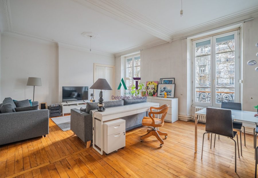 Grenoble, 17 cours Jean Jaurès, beaux volumes pour ce T3 de 96 m² situé au 2ème étage d'un bel immeuble ancien sans ascenseur . Séjour double sur parquet exposé ouest, 2 grandes chambres, une cuisine indépendante équipée sur cour exposée est, un dressing, salle de bains avec douche et baignoire, nombreux rangements muraux, double vitrage, chauffage individuel au gaz. classe énergie C. Foncier 1769 €. A visiter !