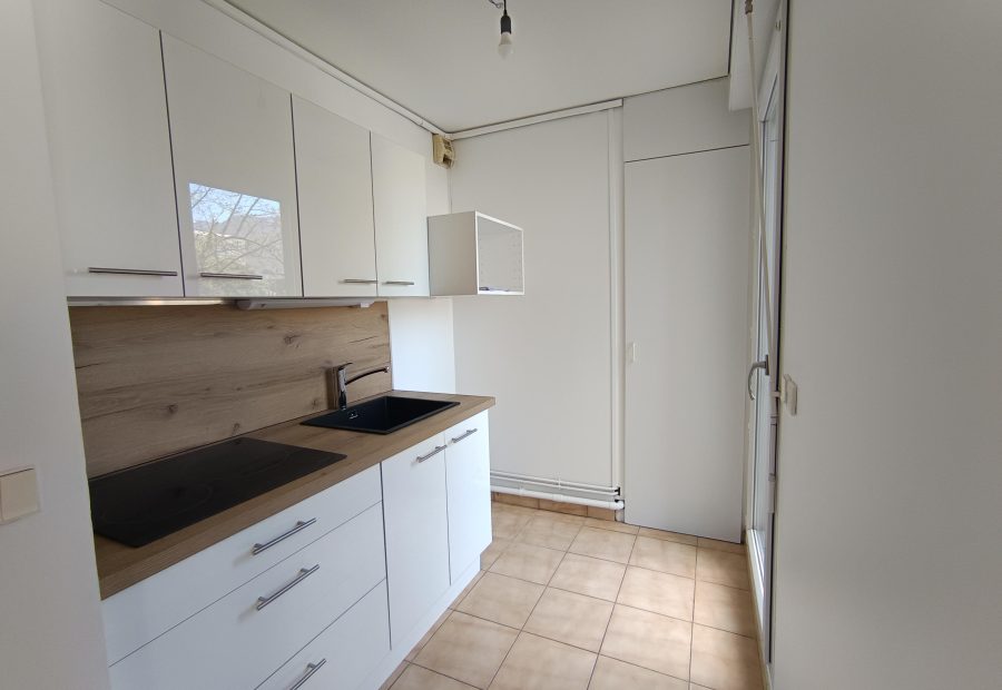 GRENOBLE EUROPOLE, 38 rue Félix Esclangon, Appartement T2 rénové de 52 m² au 2ème étage avec ascenseur, comprenant entrée, séjour de 25 m2 avec cuisine ouverte attenante, chambre et salle de bain. L'appartement dispose également d'une agréable terrasse, d'une cave et d'un garage privatif. Libre début avril. Le bien est soumis au statut de la copropriété. Loyer de 809,00 euros par mois charges comprises dont 43,00 euros par mois de provision pour charges (soumis à la régularisation annuelle). Les honoraires charge locataire sont de 680,29 euros ( soit 13,01 euros/m² ) dont 156,99 euros pour état des lieux ( soit 3,00 euros/m² ). DPE ANCIENNE VERSION. Zone soumise à encadrement des loyers. Le loyer de base du bien proposé est de 766 euros, le loyer de référence majoré (fixé par arrêté préfectoral) est de 815,88 eurosLes informations sur les risques auxquels ce bien est exposé sont disponibles sur le site Géorisques : https://www.georisques.gouv.fr