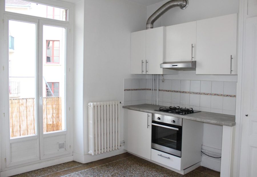 T2 - GRENOBLE - Grenoble, 53 rue Thiers, quartier Championnet, au calme, Spacieux 2P+C de 63.64 m² , beaux volumes. Au 3ème étage sans ascenseur. Séjour avec alcôve. Cuisine équipée et séparée (plaque gaz, hotte et four). Une salle de bain avec WC séparés. De nombreux rangements : séjour, entrée et une buanderie. Séjour avec cheminée décorative et parquet. 2 petits balcons (cuisine et séjour). Fenêtre en PVC double vitrage avec persienne métallique. Une cave et un grenier. Chauffage et eau chaude individuel au gaz. Disponible le 04/05/2026. Le bien est soumis au statut de la copropriété. Loyer de 735,00 euros par mois charges comprises dont 42,00 euros par mois de provision pour charges (soumis à la régularisation annuelle). Les honoraires charge locataire sont de 700,04 euros ( soit 11,00 euros/m² ) dont 190,92 euros pour état des lieux ( soit 3,00 euros/m² ). Montant estimé des dépenses annuelles d'énergie pour un usage standard : entre 970 et 1 370 euros. Prix moyens des énergies indexés en 2021. Les informations sur les risques auxquels ce bien est exposé sont disponibles sur le site Géorisques : https://www.georisques.gouv.fr