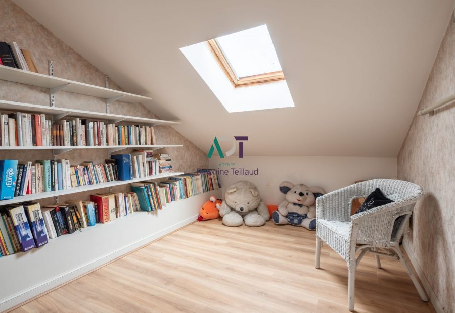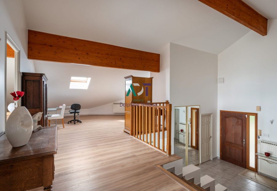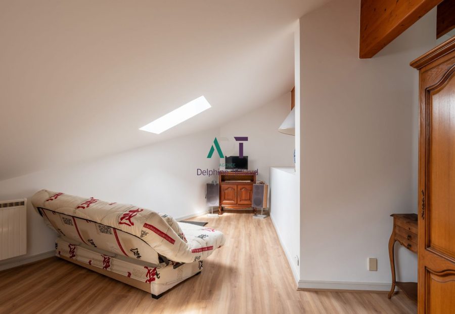 A l'étage, une grande mezzanine pouvait faire office de bureau ou une chambre supplémentaire, deux chambres avec balcon sud/est.