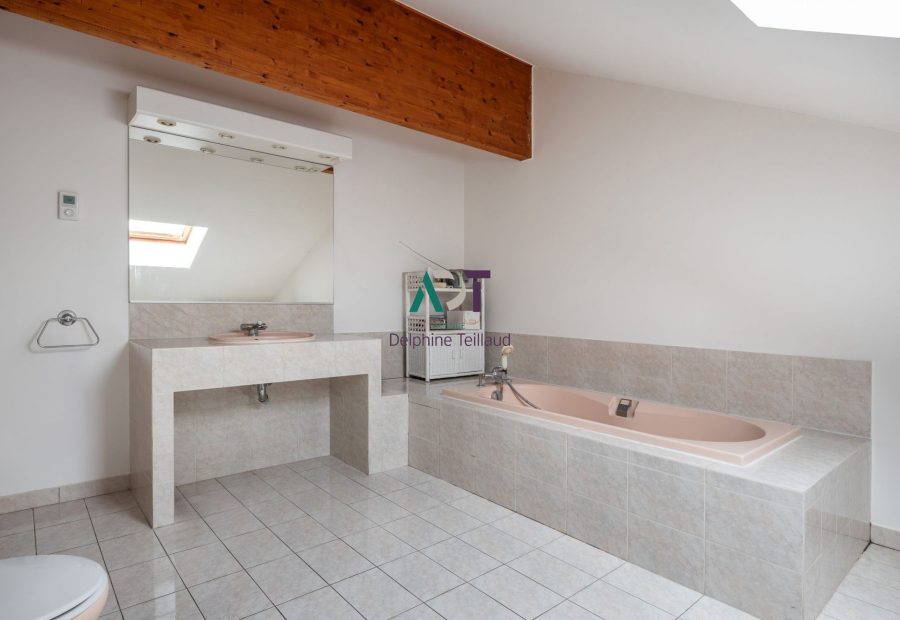 Une seconde salle de bains avec baignoire, douche. WC indépendant.