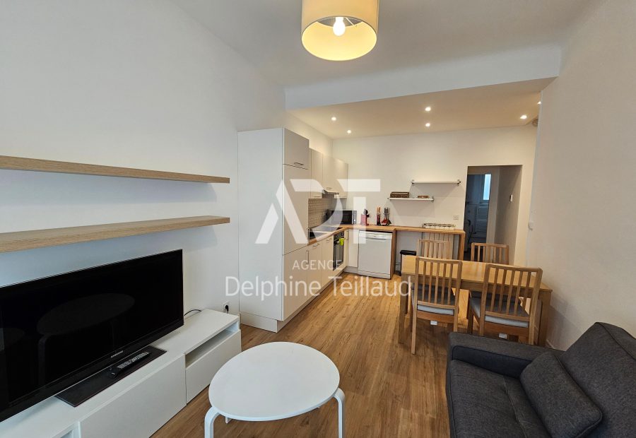 GRENOBLE PIERRE DUPONT T2 MEUBLE - Grenoble 5 rue Pierre Dupont, dans copropriété sécurisée avec digicode, T2 meublé d'environ 37.76m² rénové en 2024 (avec isolation), séjour avec coin cuisine aménagée/équipée (hotte + plaque + four + micro ondes + frigo/congél + lave vaisselle), une chambre avec lit double, une salle d'eau avec douche et machine à laver, un WC séparé. Chauffage eau chaude individuel chaudière gaz (entretien à la charge du locataire), eau froide individuelle, DV PVC, climatisation mobile. DPE D. Disponible le 27 mai 2026. Le bien est soumis au statut de la copropriété. Loyer de 704,00 euros par mois charges comprises dont 38,00 euros par mois de provision pour charges (soumis à la régularisation annuelle). Les honoraires charge locataire sont de 490,88 euros ( soit 13,00 euros/m² ) dont 113,28 euros pour état des lieux ( soit 3,00 euros/m² ). Montant estimé des dépenses annuelles d'énergie pour un usage standard : entre 660 et 930 euros. Prix moyens des énergies indexés en 2021. Zone soumise à encadrement des loyers. Le loyer de base du bien proposé est de 666 euros, le loyer de référence majoré (fixé par arrêté préfectoral) est de 592,832 euros et le complément de loyer est de 73,17 euros par mois.Les informations sur les risques auxquels ce bien est exposé sont disponibles sur le site Géorisques : https://www.georisques.gouv.fr